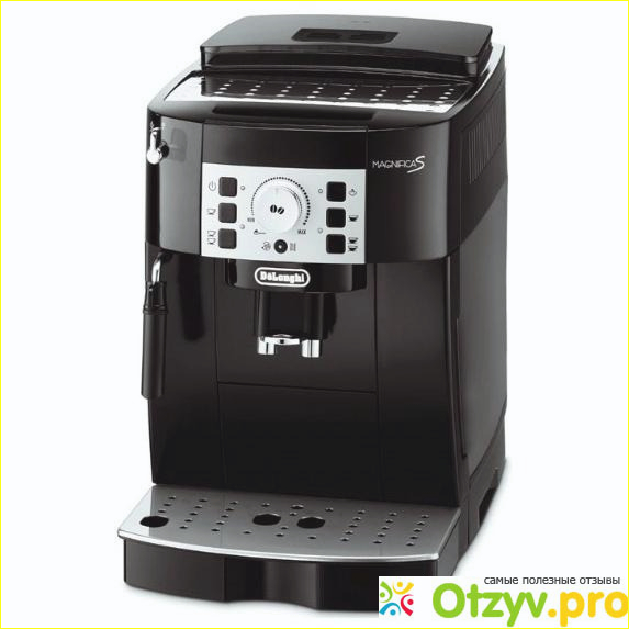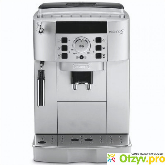 Эта машина сделана по полностью автоматическому типу. Она пригодна для приготовления как зернового кофе а, так и молотого. Имеется несколько режимов готовки разных напитков. Также можно здесь приготовить обычный кипяток. В высоту этой машины довольно большая, и имеет целых 33 см. Ёмкость резервуара рассчитана чуть меньше 2 литра, точнее на 1,8 литра. Главный выключатель машины расположен сзади устройства, поэтому лазить туда вам точно не придется. Всё что касается включения машины и выключения расположено спереди, на основной панели. Также имеется специальная площадка, на которой производится подогрев.