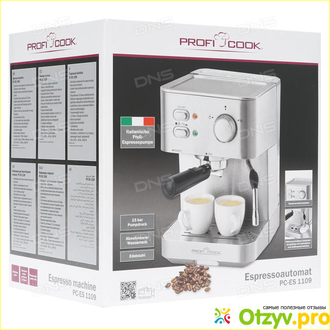 В этой статье речь как раз пойдет об одной такой кофе машинке, которая называется Profi Cook PC-ES 1109.