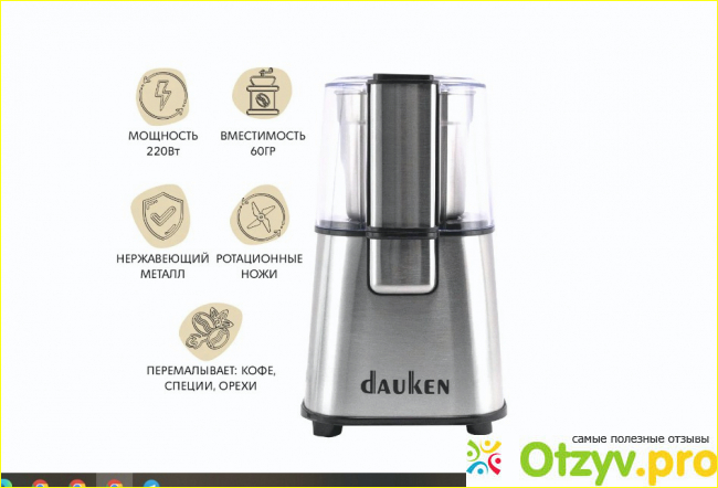 Чаша довольно большого объема - на 60 г зерен кофе- это огромный плюс для ценителей кофейного напитка с утра, особенно, если это семья. Или подруги собрались вместе в обеденный перерыв за чашкой кофе. Чаша и все детали устойчивы к окислению. Что позволит не беспокоиться за свое здоровье и здоровье близких. Даукен выпускает безопасную технику.