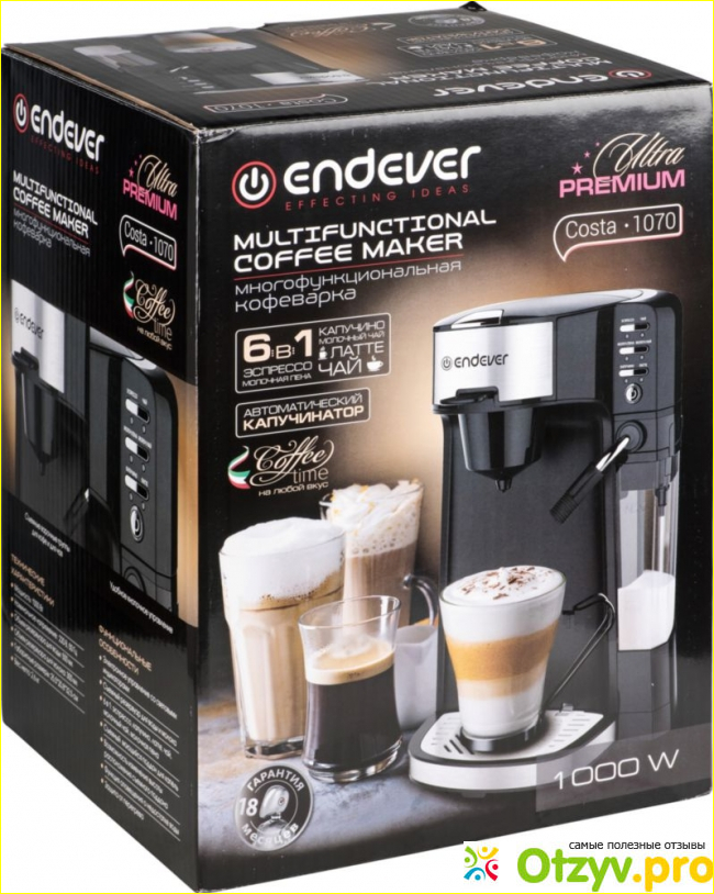 Кристина. Кофеварка ENDEVER Costa-1070 - это пустая трата денег, вкусный кофе не варится так, как мы делали на тесте. пятнадцать бар здесь и не пахнет, давление бара пять, не больше, поэтому любители кофе красиво пенятся мимо. Тогда это не рожковая кофеварка и самое что ни на есть капельное, где кофе фильтруется через мелкую металлическую сетку. Что касается автоматического вспенивателя молока, то взбить молоко в пену он точно не сможет, по максимуму он сможет нагреть молоко. Заваривать чай тоже не работает, потому что чай должен настояться хотя бы несколько минут.