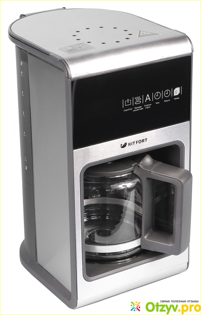 Работает на молотом кофе (кофемолка не предусмотрена)! Управление при помощи сенсорных кнопок, есть отложенный старт (очень удобно засыпать все ингредиенты и залить воду, а утром получить готовый бодрящий кофе), но я редко им пользуюсь - у меня всегда найдется четырнадцать минут с самого утра - это как ритуал!
