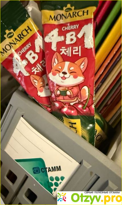 Мне понравились. Не знаю, что там за зверек нарисован, но он милейший. Яркий стик это тоже плюс. Стоят они недорого вообще. Продаются обычно на кассе любого магазина. Пахнет вишней. Причем аромат натуральный. Тут жирный плюс ставлю монарху. Умеют делать хороший кофе.
