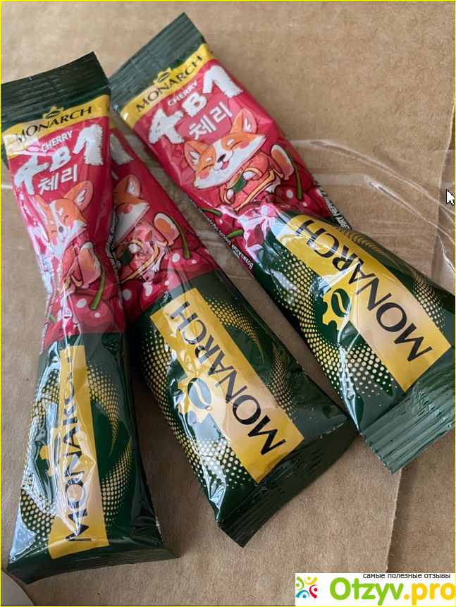 И пусть я пью кофе не так часто, попробовать все же можно. Все стики для меня стандартные. В плане открыл, высыпал в чашку, водой залил и пьешь. Отмечу, что стик открывается хорошо, не придется с ним возиться. Эти кофейные напитки всегда вкус и запах кофе + того вкуса, что указан на стике. Так что тут пахнет вишней и во вкусе она тоже имеется. Пахнет довольно приятно, немного напоминает вишневую конфетку. Вишня добавляет лёгкую кислинку, напиток получается не приторно сладким, а приятным. Консистенция равномерная, без осадка, смесь полностью растворяется. Уже есть: кофе, сахар, сливки и вишня. Не нужно экспериментировать с пропорциями, баланс отличный. Да, это не классический кофе, но мы ждем как раз интересного и приятного вкуса. Monarch 4 в 1 сherry для любителей кофе с топингами и необычными вкусами. Как вкусный вариант кофейного, недорого напитка вообще супер.