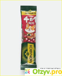 Я большой любитель всяких необычных кофейных штук, поэтому мимо новинки Monarch 4 в 1 со вкусом вишни пройти просто не смогла. Обычно такие напитки в пакетиках нравятся не всем, но мне они нравятся. Открываю стик и сразу чувствуется обалденный аромат спелой вишни - он такой насыщенный, напоминает конфеты с ягодой.