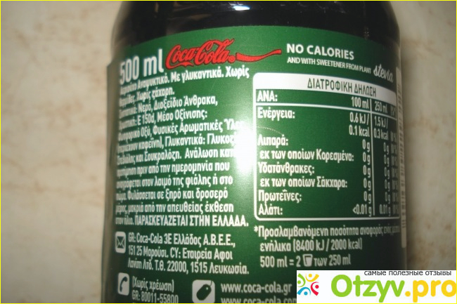 Отличается эта кола только упаковкой. Она имеет зеленую крышечку и такую же этикетку.