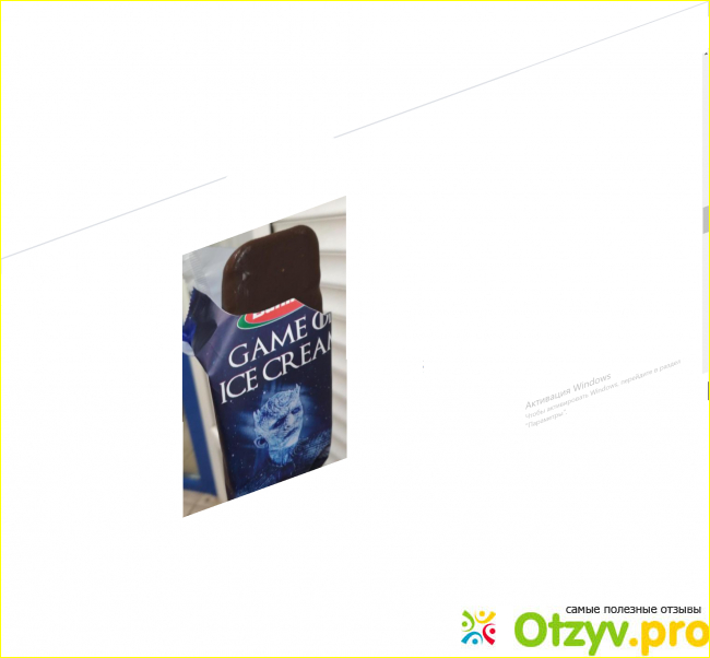 На упаковке зверское лицо Короля Ночи, но указано, что мороженое с ароматом кокоса, раньше не встречала. Далее на тёмно-синей обложке написана чёрным цветом вся информация для покупателя, которую не прочесть, дата изготовления указана чётко, достаточно крупными цифрами на белой полосе. Любопытство победило и я купила мороженое. Под упаковкой находилось нежнейшее мороженое с кокосовой стружкой под шоколадной глазурью. Мне мороженое понравилось.