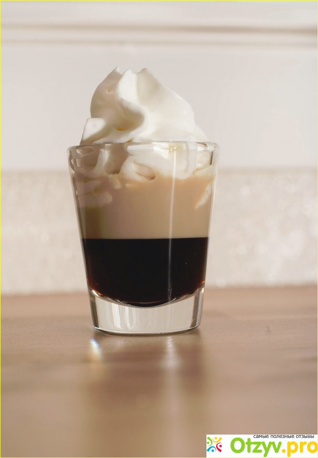 Возьмите узкую стопку объемом 40-60 мл. Налейте в нее сначала кофейный ликер (например: Kahlua), затем сливочный ирландский ликер (например: Bailey`s или Irish cream). Сверху- взбитые сливки.