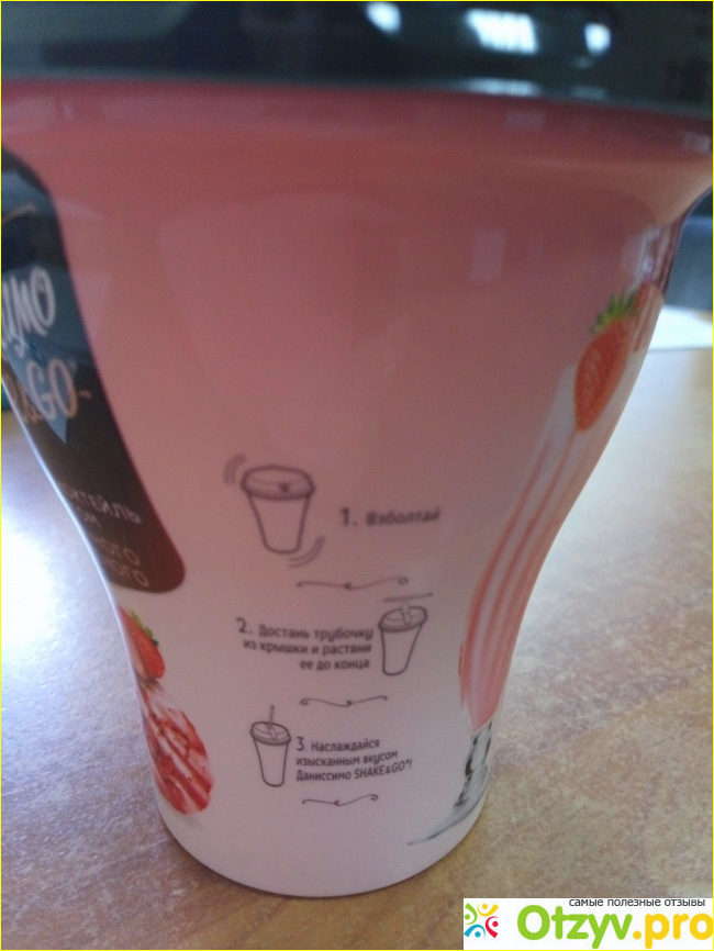 На стаканчике есть вся необходимая информация о составе, пищевой ценности, а также есть "инструкция в картинках", как употреблять этот коктейль