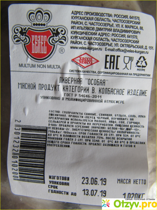 Я всем очень рекомендую продукцию мясокомбината "Велес" и в частности ливерную колбасу "Особая". Качество продукции у "Велеса" отменное и все очень вкусное и натуральное.