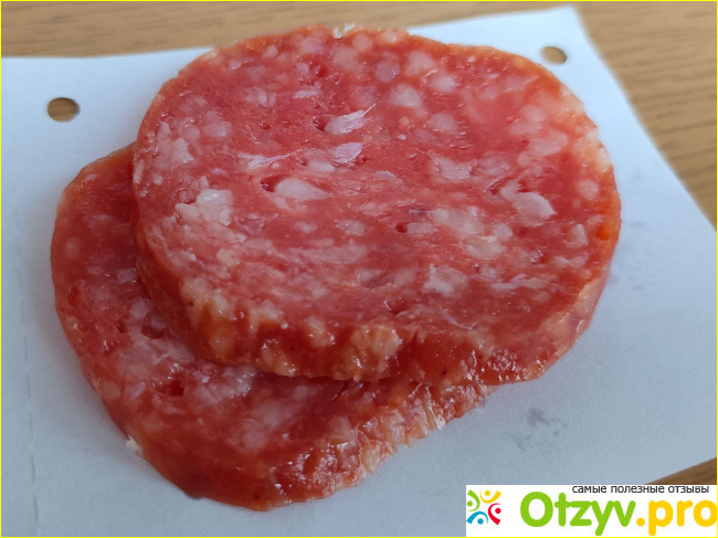 Выбрали по цвету. Шкурка снимается легко и быстро общим чехлом. Режется очень тяжело. Нарезать тонко практически нереально. На ощупь очень жирная. Аромат мне не нравится, он не похож на мясной, отдает какой-то химией. Цвет яркий красный и много мелкого сала. Вкус неимоверно соленый и не натуральный. Ее максимум под пиво хорошо брать.