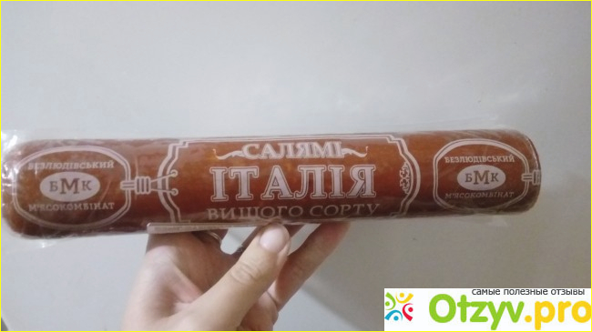 Я не очень люблю колбасы, но моя семья наоборот очень любят бутерброды с колбаской и приходится иногда покупать. Папу дней назад купила по акционной цене новую для меня колбаску от производителя "Безлюдовский мясокомбинат", под названием "Италия". Покупала по 104,50 грн за килограмм.