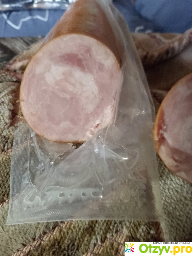 Да и по вкусу я бы не стал говорить, что она полукопченая. Все таки это ветчина. Но это мое личное мнение . А так колбаса по вкусу неплохая. В меру соли и специй. Фарш крупный, практически там не фарш, а мясо.