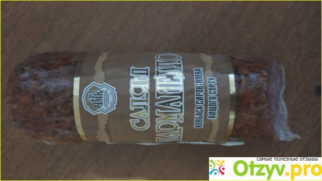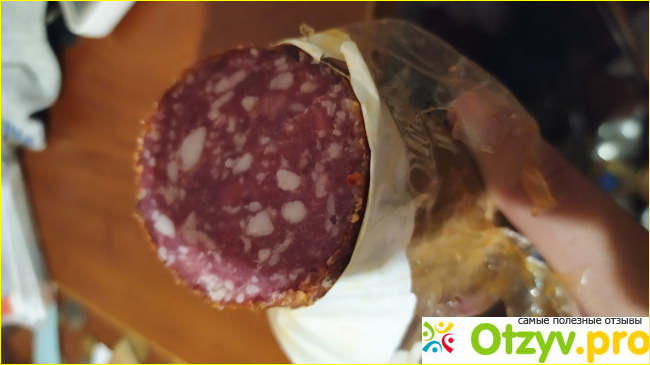 Это настоящая сырокопченая колбаса высшего сорта, полностью из мясного сырья, и причем из качественного сырья.