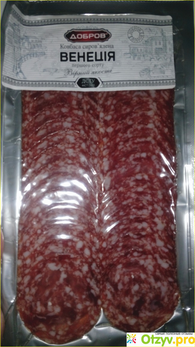 Колбасные изделия я и моя семья покупаем редко, но иногда хочется какой нибудь вкусной вредности. Сегодня я купила колбаску сырокопченую от торговой марки Добров, под названием "Венеция". Такая колбаска есть в продаже в виде стандартной палочки, и уже порезанная и упакована в вакуумной упаковке.