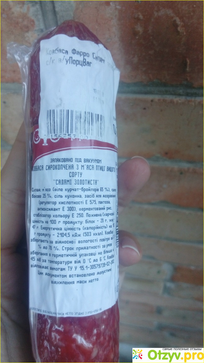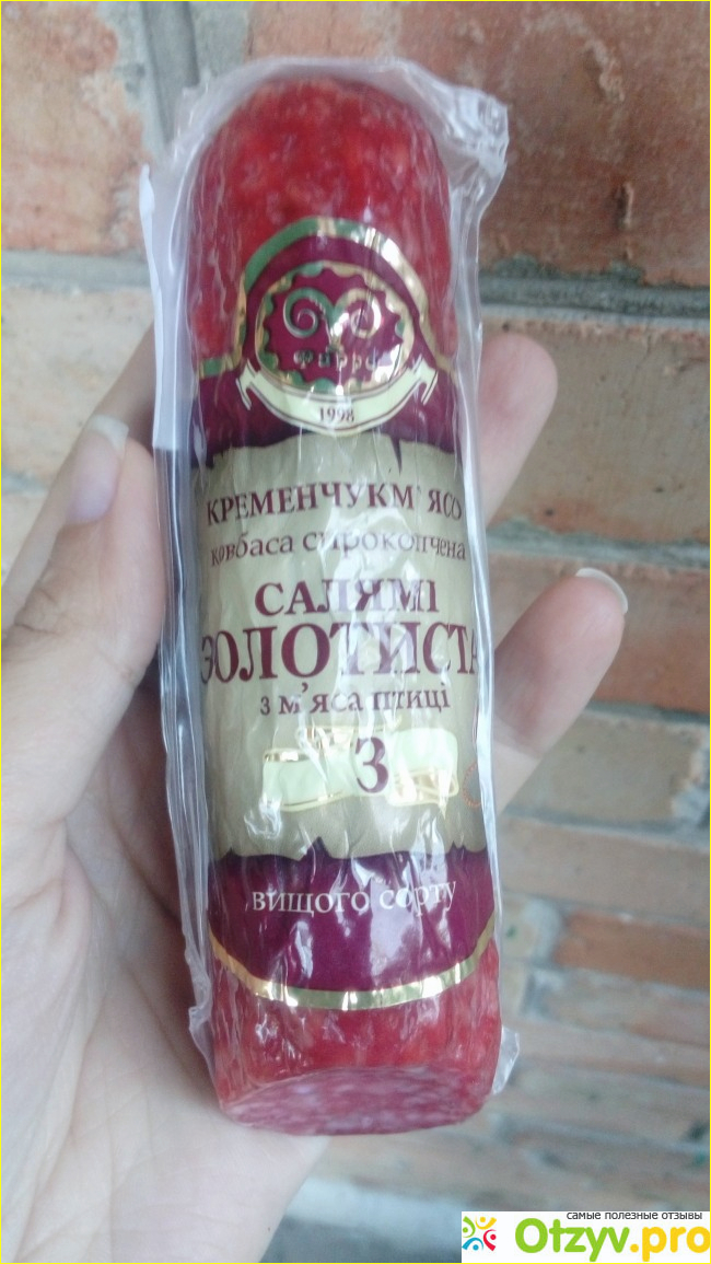 Моя дочка очень любит сырокопченую колбаску, но сейчас тяжело найти качественную и м хорошим составом. Для меня одной из лучших является колбаса сырокопченая от торговой марки Фарро Салями Золотистая.