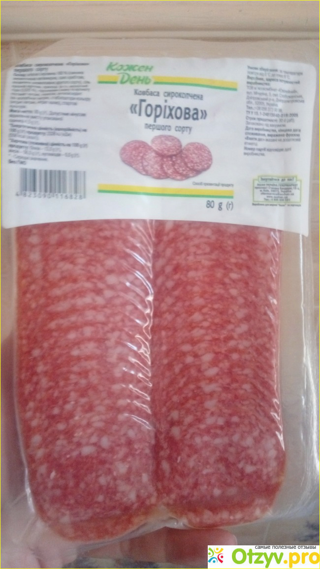 Колбаса сырокопченая "Ореховая" Каждый день по вкусу мне очень нравится, и качество доволи неплохое. Эту колбаску я купила в дорогу, так как она есть в продаже уже готовая порезанная и упакованная в вакуумной упаковке. В такой упаковке вкус сохраняется дольше и во внутрь упаковки не попадают микробы.