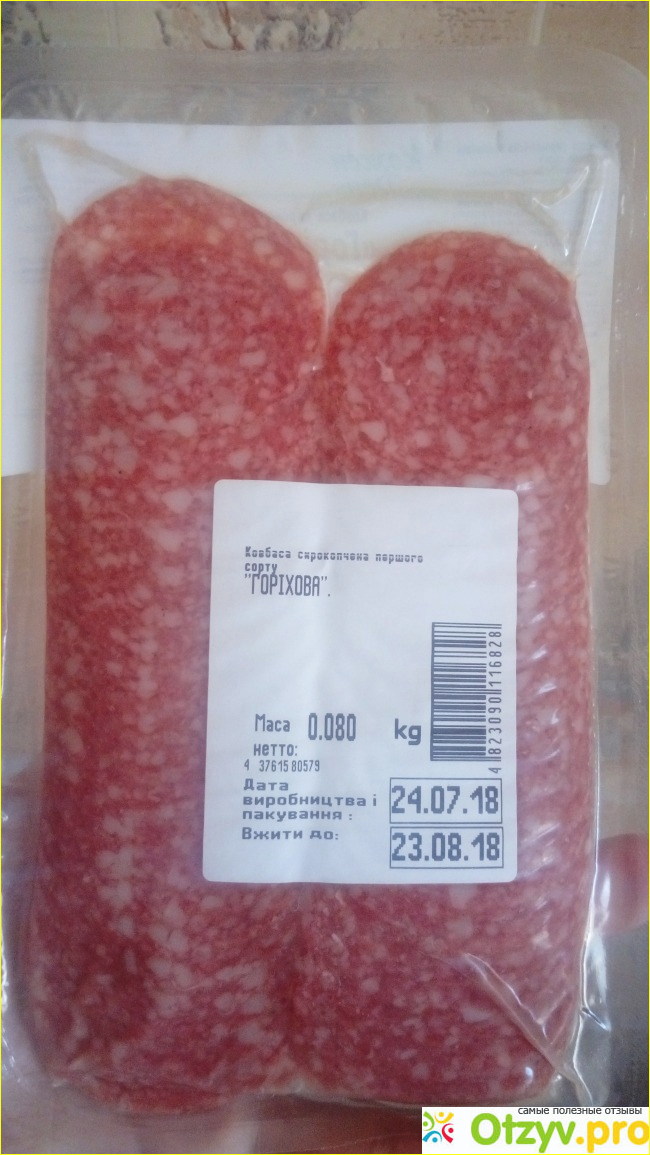 Срок годности такой колбаски небольшой, всего месяц, и это подтверждает ее натуральный состав.