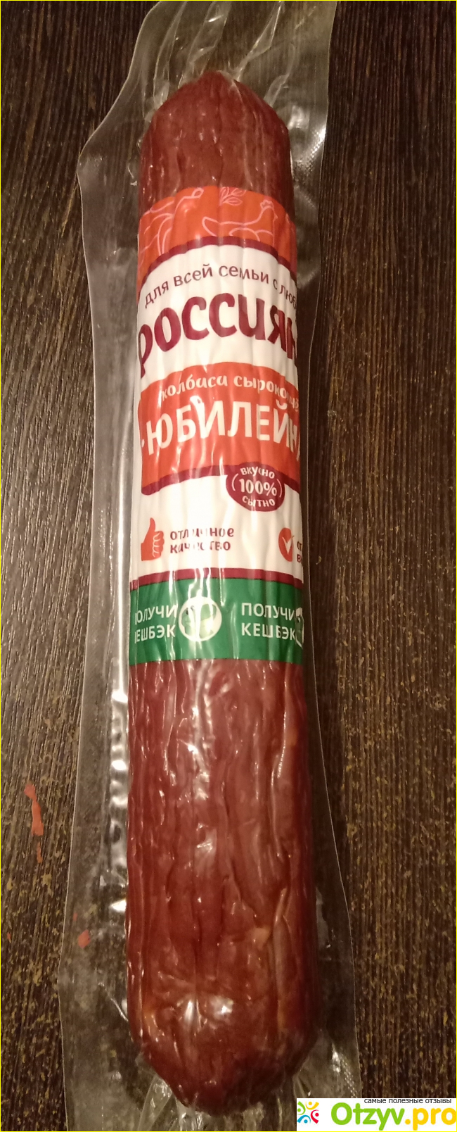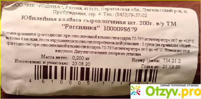 МК "Родина". Срок годности всего три месяца. После открытия упаковки, что мне нравится, колбаса не становится твердой, режется достаточно легко даже на тонкие пластинки.