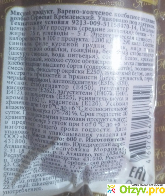 На деле это не сервелат, а колбаса варено-копченая с далеко не самым лучшим составом.