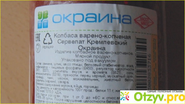 Больше всего меня расстроил состав. Несколько добавок с маркировкой Е. И это меня смущает. А поскольку мой сын очень любит лопать колбасу, причем любую, то я стараюсь выбирать ее относительно с натуральным составом.
