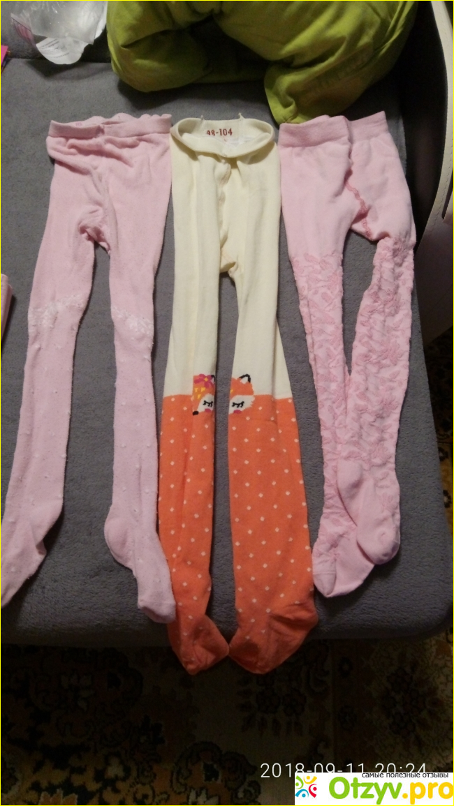 Колготочки идут размер в размер, немножко маломерит слегка. Пошив очень аккуратный и добротный, не нашла ни одной торчащей ниточки, шовчики все ровные, резиночка не тугая. Смотрятся просто прелестно.