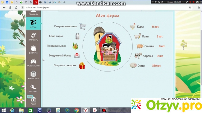 Я зарегистрировалась и начала развивать свой колхоз. В начале игры мне выдали небольшую сумму, на которую я могла купить пару кур. За вступление в группу в контакте давали козу. Мне оставалось только ждать и копить денежки, потом покупать на них еще животных и еще. Чтобы вы понимали о чем идет речь, посмотрите в таблицу продуктивности животных.