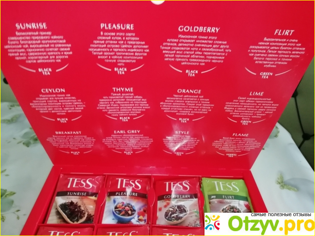 С большим удовольствием, в очередной раз, купила домой коллекционный чай Tess пакетированный 12 сортов. Первый раз попробовала набор несколько лет назад, когда мне его преподнесли на праздник. Разнообразие вкусов оставило удовольствие и теперь набор частый гость в моем доме, так же использую его в качестве подарка.