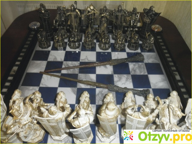 Но качество страдает - пешки потом плохо скрепляются, к тому же фигурки имеют довольно сильный запах какой-то химии. На момент выпуска коллекции журнал с фигуркой стоил около 50 гривен. Помимо шахмат, иногда к журналу прилагались разные други мелочи - типа значков с Гарри Поттером и его друзьями. Также в наборе шли волшебные палочки с магнитом на конце - чтобы двигать фигурки ( честно говоря, неудобно). В результате, если посчитать, то шахматы обходятся по цене, за которую можно купить какой-нибудь дорогой коллекционный набор.