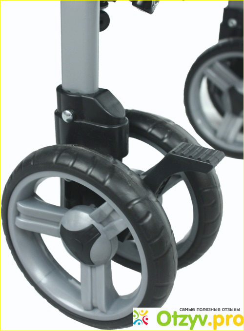 Четыре пары сдвоенных пластиковых колес позволяют коляске максимально быстро ездить и кроме того она быстро заворачивает.