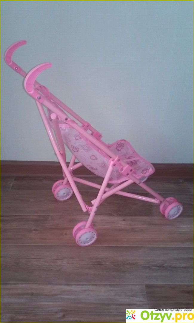 Как я писала выше, коляска каталка не самого лучшего качества, но выглядит довольно красиво. Такие коляски бывают в розовых тонах и голубых. Да, такими колясками, могут играть не только девочки, но и мальчики тоже. Мальчикам тоже очень нравится катать такую коляску каталку. Проверено на моем племяннике. Он очень любит катать в ней своего любимого медведя.