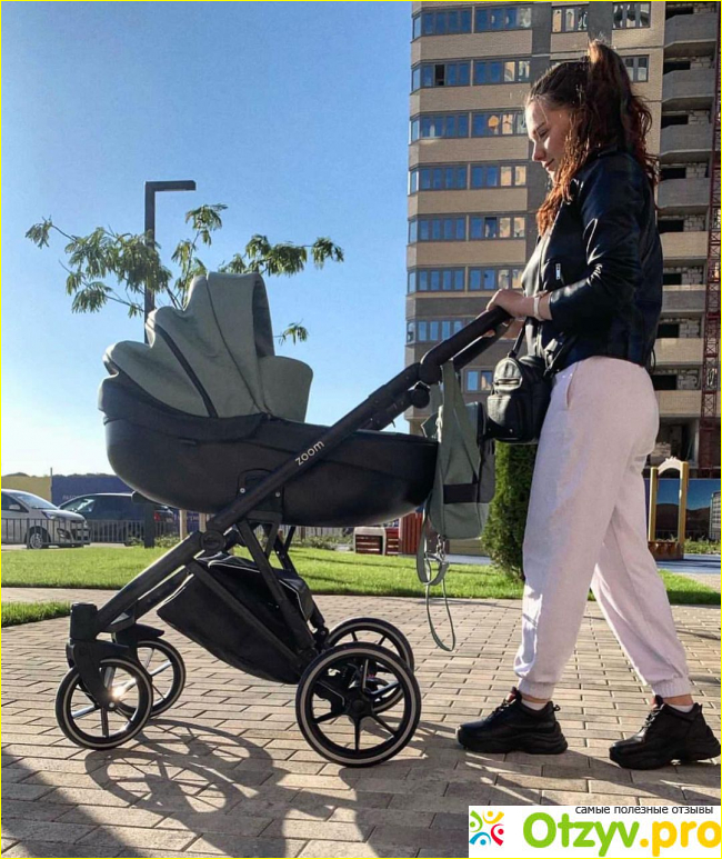Есть закрытая корзинка, можно, наверное, что-то класть, но пока не приходилось. Из аксессуаров - рюкзак, москитная сетка, дождевик, матрасик и даже теплые муфты для рук есть. Выглядит как спортивная машина) Мамочки на площадке спрашивают, где такую купила. Молнии все прорезиненные, вода никак не попадет внутрь. Сетка на капюшоне для проветривания и смотровое окошко тоже есть. Часто пользуюсь этим, когда малыш спит, а на улице ветрено. Так, я очень довольна нашей колясочкой Zoom. Не прогадали с выбором )