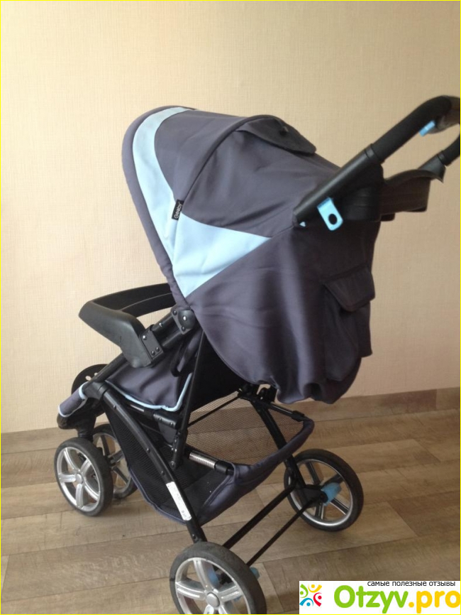 Несомненным плюсом этой коляски является козырек! Наконец-то появилась идея сделать дополнительный раздел! Очень хорошее оборудование:- дождевик, который покрывает всю коляску. Также легко при полностью опущенной спинке, если малыш спит. Очень легко закрепить замок, внутри колпачка. Удобно крепится с помощью липучки и при полностью опущенном колпачке дети спрячутся от любого ветра. И если он спит, никто его не потревожит. Да еще и для защиты от посторонних глаз. Сверху есть съемная подставка для мелочей родителям. Но я взяла его один раз, только чтобы положить лишние вещи. Карман на липучке сзади. Ну, можно сложить все мелочи и не брать сумку. Совсем то же самое регулируется в три позиции. Спинка также регулируется в три положения. Сидит почти вертикально! Это один из важных критериев отбора. Колеса: передняя часть крепления. Сзади 2 пружины амортизаторов. Диаметр колеса почти такой же, спереди двадцатьдва сантиметра, сзади 21 см. Тормоз производит впечатление надежного. Наверное, потому, что коляска новая. При подъеме по лестнице не повредится. Очень легко. Отличная корзина. С полностью опущенной спиной, вы можете легко добраться туда! Вы можете нажать на пружину и вуаля! Я просто влюбилась, отличная идея. Вот в чем недостаток. Почему вы делаете этот цвет?! В слякоти вся грязь, которая найдется, а при стирке нужно будет откручивать болты. Ну и боковая сетка... вы должны сшить плащ внутри. Складывание коляски одной рукой!!! Что вам нужно. Механизм безумно легкий, я рада. Достаточно компактный. Легко помещается в Сандеро в багажнике.