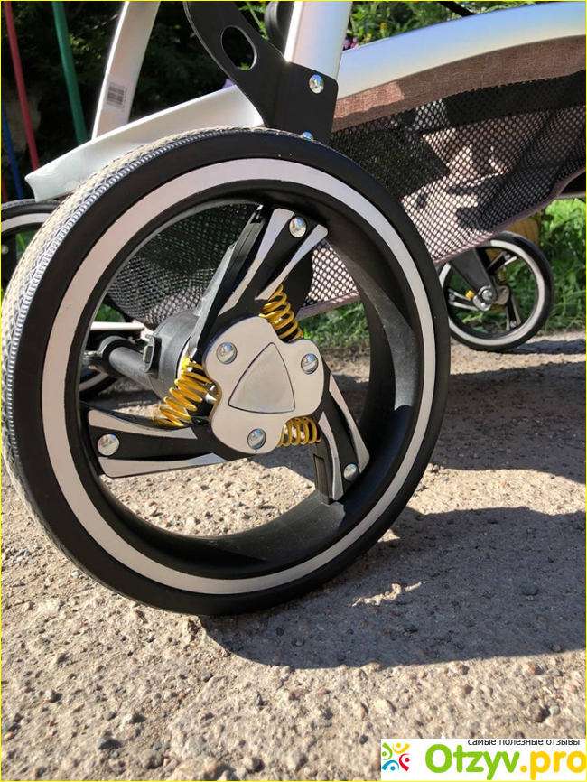 Ход у Pristina плавный. На каждом колесе есть небольшая пружинная амортизация. Передние – поворотные, но можно их и фиксировать для движения «прямо» при необходимости. Все колеса съемные, что значительно облегчает мне уход за ними после прогулок