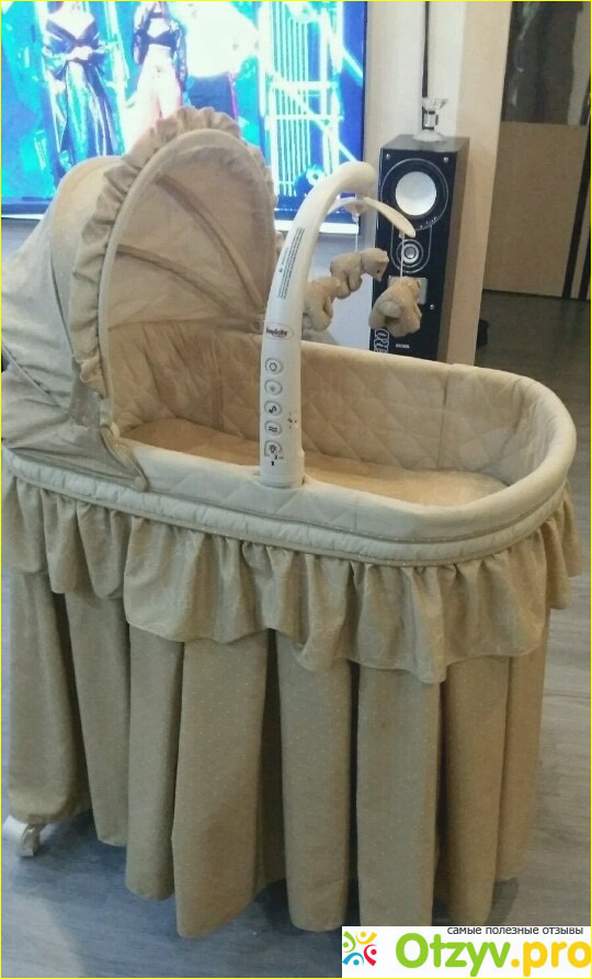 К рождению малышки родители сделали нам царский подарок. Чудная, уютная колыбелька, вся в оборочках приятного бежевого цвета, с длинной юбкой, закрывающей большой ящик для памперсов и игрушек.
