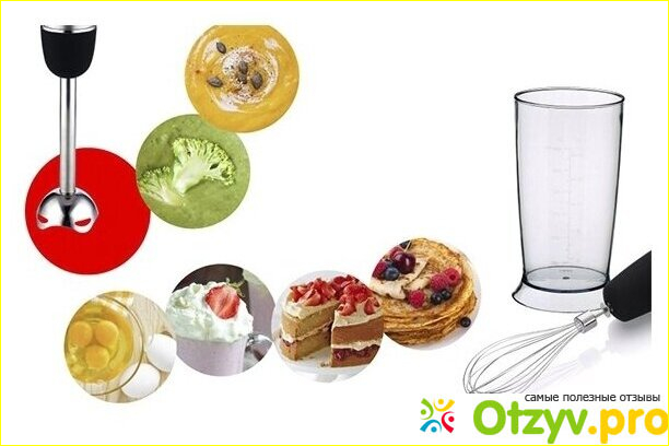 В наборе конечно же идет сам моторный блок, который и приводит основные элементы комбайна в движение. Самым ходовым элементов в этом приборе является блендер. Благодаря ему можно измельчать различные по твердости продукты. Так же в наборе еще поставляет венчик. Но многие пользователи данной модели жалуются на то, что венчик не очень хорошо справляется со своей задачей и он достаточно хлипкий. Такой недостаток действительно есть у этого прибора, поэтому использовать венчик лучше всего для взбивания слишком жидких блюд.