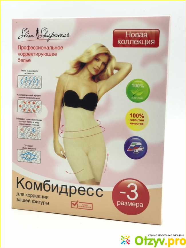 По конструкции комбидресс сочетает в себе бюстик и трусики, соединенные в одно целое, это что-то вроде закрытого купальника. Вот именно такое строение и привлекло меня, как привлекает многих женщин. Мне понравилось, что он подойдет женщинам с совершенно различными типами фигур. Интерес вызвало и то, что верхняя часть его имеет эффект push-up. Этот бесподобный эффект делает вашу грудь пышной за счет поднятия вверх. Материал очень тонкий и эластичный, он не натирает кожу и не заметен под одеждой. Я даже посещала спортивные занятия в нем, никакого дискомфорта не было. Так как комбидресс хорошо и мягко давит на тело, а активная лечебная пропитка взаимодействует с кожей тела, то ненужные жировые прослойки начинают постепенно исчезать.