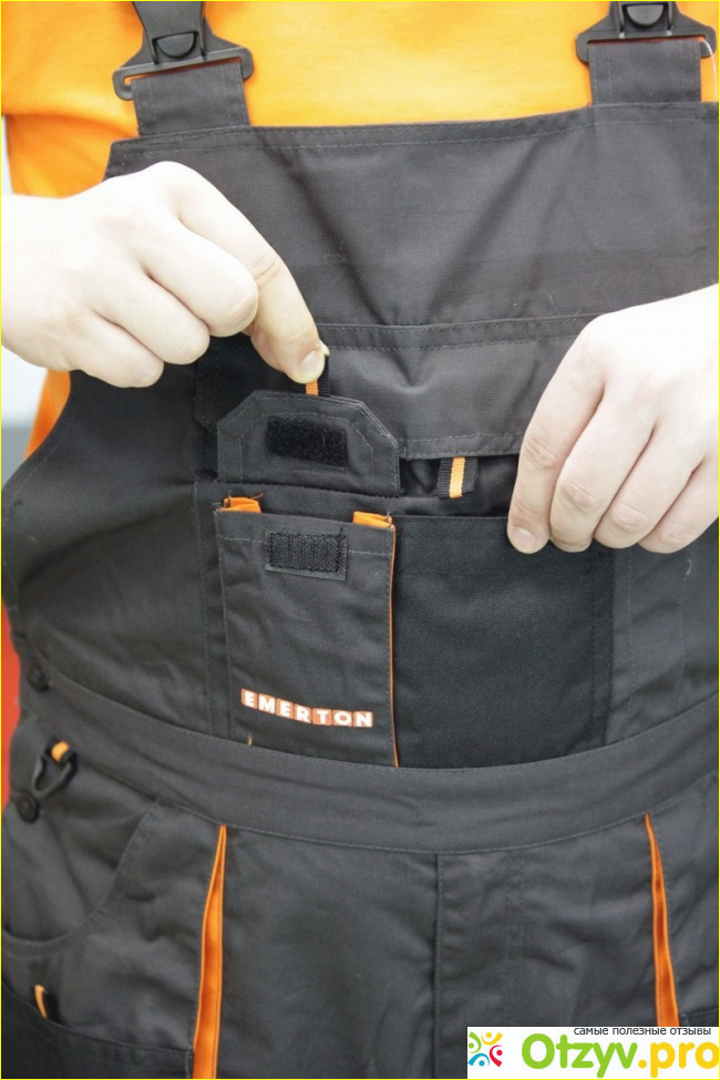 Достаточное количество карманов. Помещаются необходимые вещи. Для электрика, поднятого в корзине вверх или механика, залезшего под технику, необходимо иметь инструмент под рукой. Карманы продуманы так, что в них кладется необходимое, плюс не выпадает, а когда нужно легко достать.