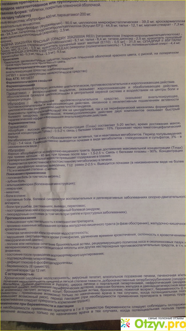 Когда читала инструкцию по применению, обратила внимание, что в составе, только парацетамол и ибупрофен.