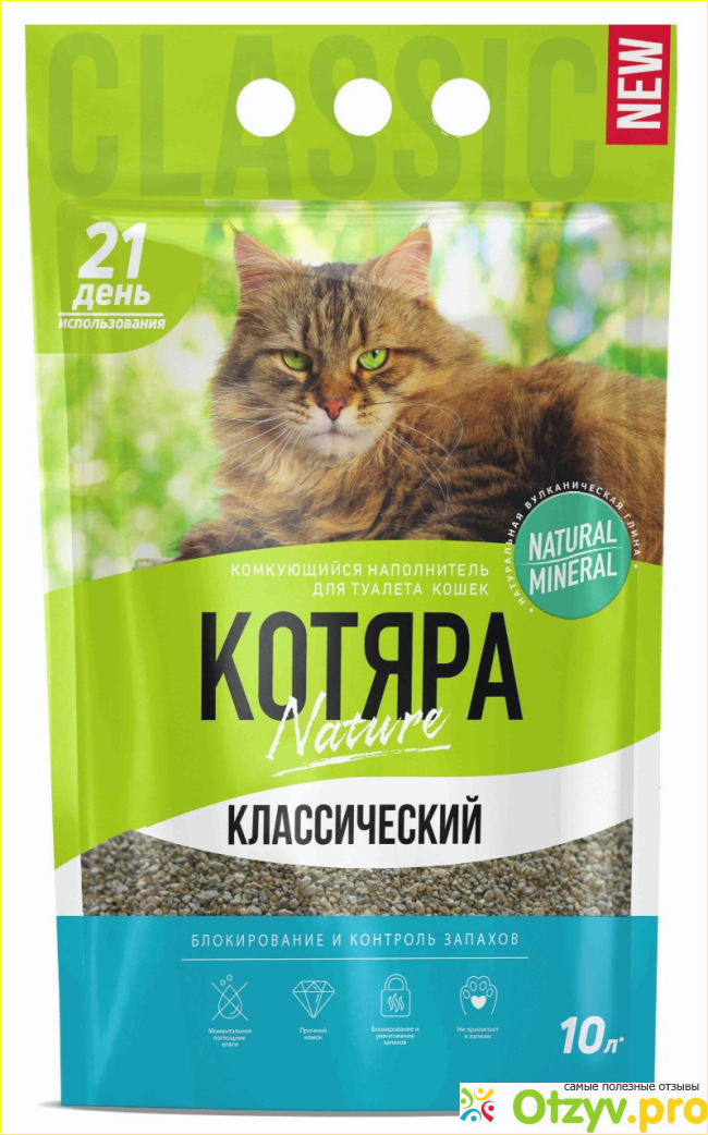 Поискав в интернете инфу про различные наполнители, решила взять на пробу Котяру. У этого бренд есть и с отдушкой, и с углем. Я взяла классику, так как не знала, как кошка на это будет реагировать. Наполнитель бентонитовый, сделан из глины. Сами гранулы мелкие, но однородные, так что ничего не будет царапать подушечки лап.