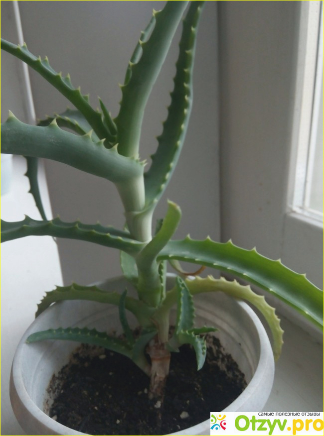 Выросстает цветок довольно-таки большой, порой высота его достигает до 50 см, с широкими колючими листиками, чья мякоть и сок как-раз и дают лечебную пользу.