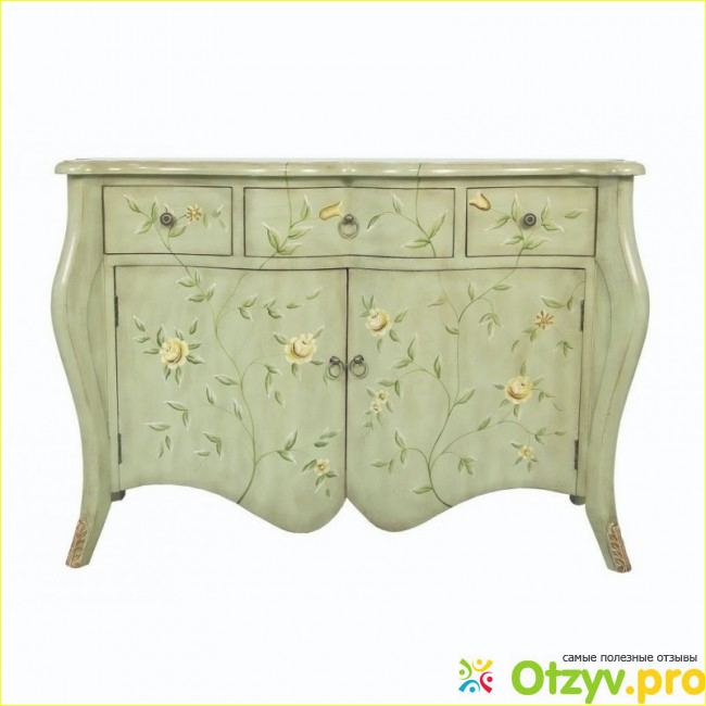 Комод "Printemps" это украшение нашей спальной комнаты, он изготовлен таким образом, что создает комфорт и уют в нашей спальной комнате. Выполненный во французском стиле из массива сосны, своеобразного зеленого цвета с ручной росписью, он просто завораживает своей красотой. Имея вполне стандартные габариты и вес в шестьдесят килограмм, он выглядет легким и невесомым.