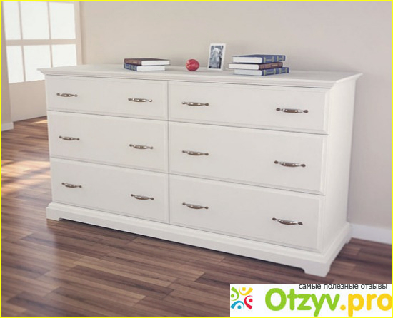 Комод не высокий, состоит из двух половинок. в каждой из которых по три отделения, всего отделений получается шесть. Никаких ручек. просто у ящичков скошенные краешки, берешь за уголок и запросто все открывается, кстати таким образом ничего не залапывается, тереть и отмывать пальцы постоянно не надо.