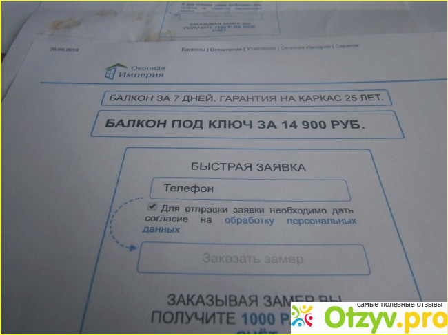 Кроме всего почего, в рекламе говорится об изготовлении каркаса балкона за 7 дней, а реально его делали 14. За прибытие замерщика обесщают 1000 рублей на счет заказщика, этого нет. Это конечно мелочь, но оно присутствует в рекламе.