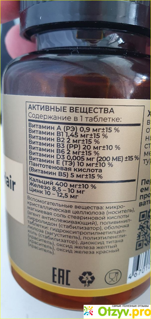 Состав богатый: витамин В1; витамин в3; витамин В2; Витамин В6; витамин д3; витамин е; пантотеновая кислота; кальций; железо; цинк; МСМ; Витамин В12; цитрат.