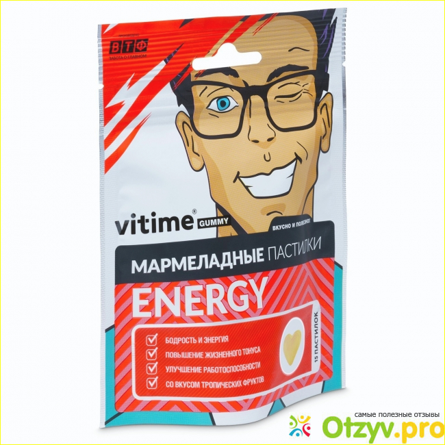 Абсолютно не разочарована. Осталась в восторге от состава. Там много микроэлементов, в том числе компоненты для заряда бодрости. Спустя 2 дня приёма обнаружила, что появились силы. Кстати, принимаю также при месячных, так как в эти дни особый упадок сил, а работать нужно. Удобная упаковка, легко положить в сумку и взять с собой на работу, отдых. Понравился вкус пастилок, напомнили мармеладки, при этом не слишком много сахара. Тропические сердечки жёлтого цвета со вкусом фруктов - то, что нужно для восстановления сил под конец рабочего дня. Буду заказывать и другие витамины Витайм, в частности для иммунитета. И вообще всю серию хочется попробовать))