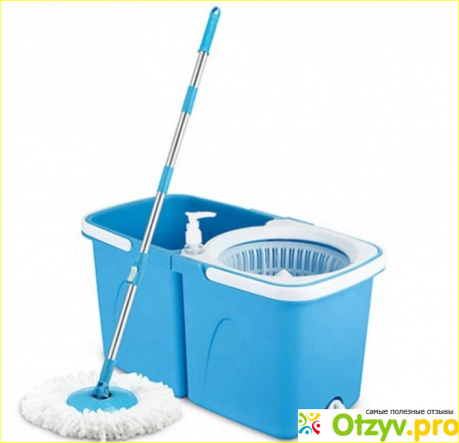 Ведро имеет систему отжима самой швабры, которая работает как центрифуга. Рукоятка самой швабры телескопическая, на ней имеется механизм вращения, который позволяет отжимать тряпку более удобно и эффективно, а также полоскать насадку на швабре автоматически и без проблем. На самом ведре имеются колесики, чтобы всегда можно было его удобно перемещать по квартире. Такие колесики иногда очень необходимы, особенно беременным женщинам, кому нельзя поднимать тяжести, при проблемах со спиной или позвоночником.