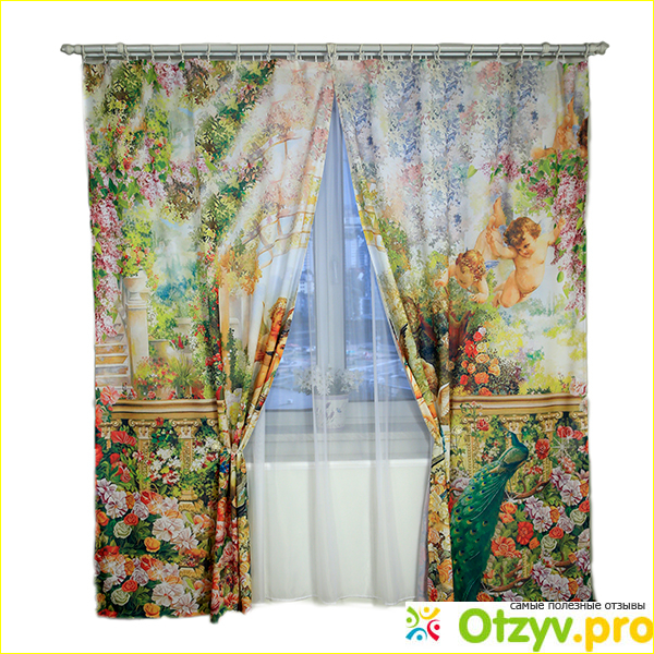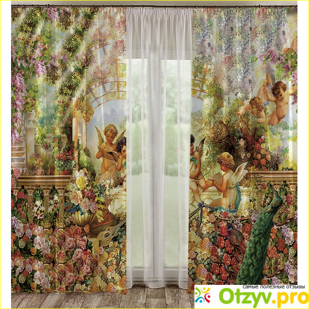 Так, в комплект фотоштор Сад ангелов входит: