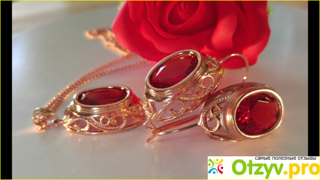 Комплект Рубиновая страсть я ношу иногда сразу весь, но чаще — частями. То есть, на каждый день (на работу и просто по делам) я обязательно надеваю серьги. Они смотрятся уместо как с джинами, так и с офисной одеждой. Немного длинновата дужка, но с волосами (у меня каре) серьги просто ослепительно красивы. Кстати, и на гладкую прическу — так же прекрасно.