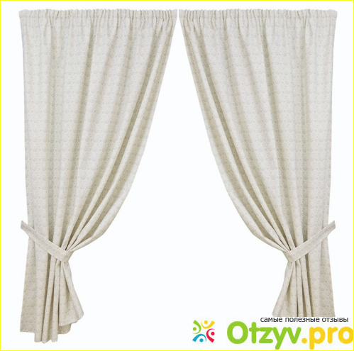 В комплект входит две портьеры и два подхвата. Материал, из которого изготовлены гардины - лонета. В своих предыдущих отзывах я уже писала, что лонета представляет собой разновидность поликоттона, состоящего из волокон хлопка и синтетики. Последняя придает практичности ткани и улучшает ее эксплуатационные характеристики.