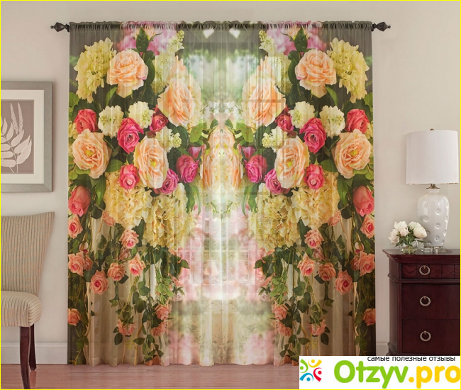 Комплект фотоштор сумел преобразить мою комнатку, она стала яркой, необычной и ожила — превратилась из простых стен с обоями в цветущий сад! И сердце мои радуется когда я заходу к себе в комнату, ведь она — словно садик с цветами, которые всегда меня ждут...